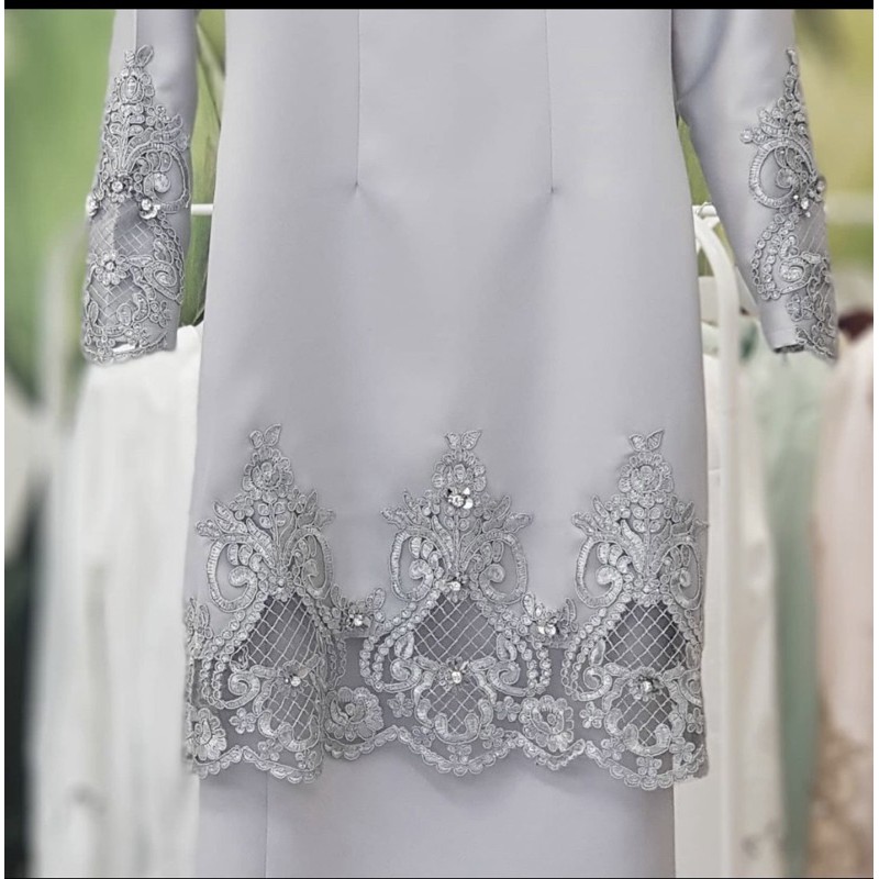 Kurung pahang miaa ni design dia just nice simple exclusive, material ajjenti bridal memang best lembut tebal, tak kedut, dan dihiasi dgn diamond beads yg . Bodice full lining in moss crepe and 24 inches invisible . Sulam kerawangborder lace simple lacemewah sesuai untuk baju nikah tunang . 505w03 hawa baju pengantin alencon lace trumpet nikah malaysia. Sz 34 42 baju kurung moden lace akad nikah simple sedondon offwhite babyblue . Baju pahang lace in off white colour for nikah / tunang / kenduri / wedding / resepsi and etc.